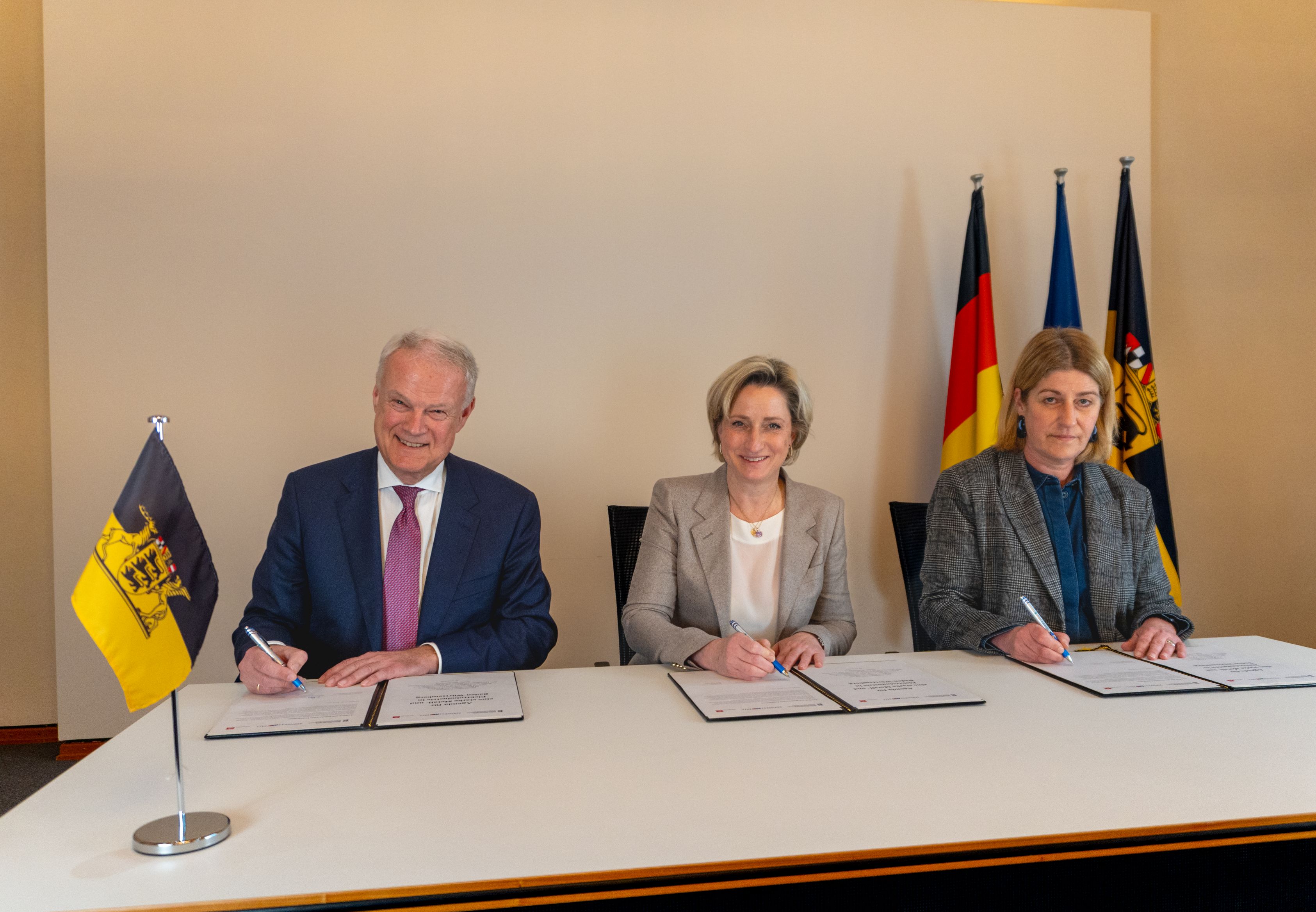 Wirtschaftsministerin Dr. Nicole Hoffmeister-Kraut stellt mit der Bezirksleiterin der IG Metall Baden-Württemberg, Barbara Resch, und dem neuen Vorsitzenden von Südwestmetall, Peter S. Krause, eine gemeinsame Erklärung für eine starke Metall- und Elektroindustrie in Baden-Württemberg vor. Gemeinsames Ziel ist es, den Raum und die Rahmenbedingungen für Innovationen, Produktivitätswachstum und operative Exzellenz zu schaffen und damit Industrieunternehmen und -beschäftigung in Baden-Württemberg auch in Zukunft zu sichern.